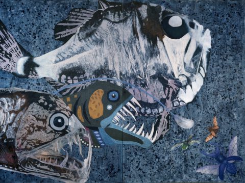 Wanderers of the Abyssal Darkness.The Ex Oz Hatchetfish L1807|oil, acrylic on canvas|218x291cm|2018