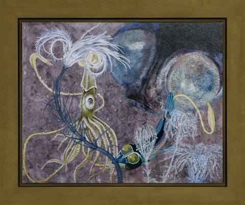 Wanderers of the Abyssal Darkness.Deep-Sea Google-Eye Meets Giant Squid S2001|oil, acrylic on canvas|102x122cm|2020